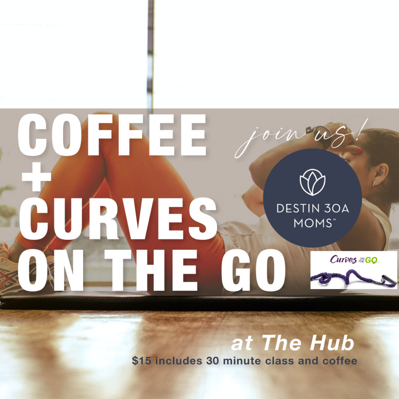 30 minute class. $15. Coffee+ the Curves on the Go workout with Delinda is included in your ticket.